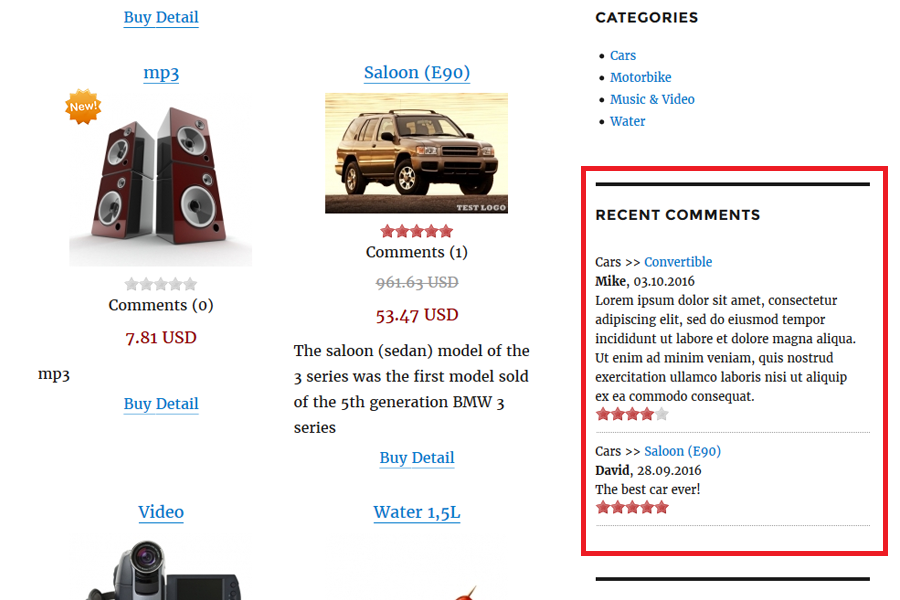 Recent Comments 1.6.0 (WPshopping 1.6.0 or greater)