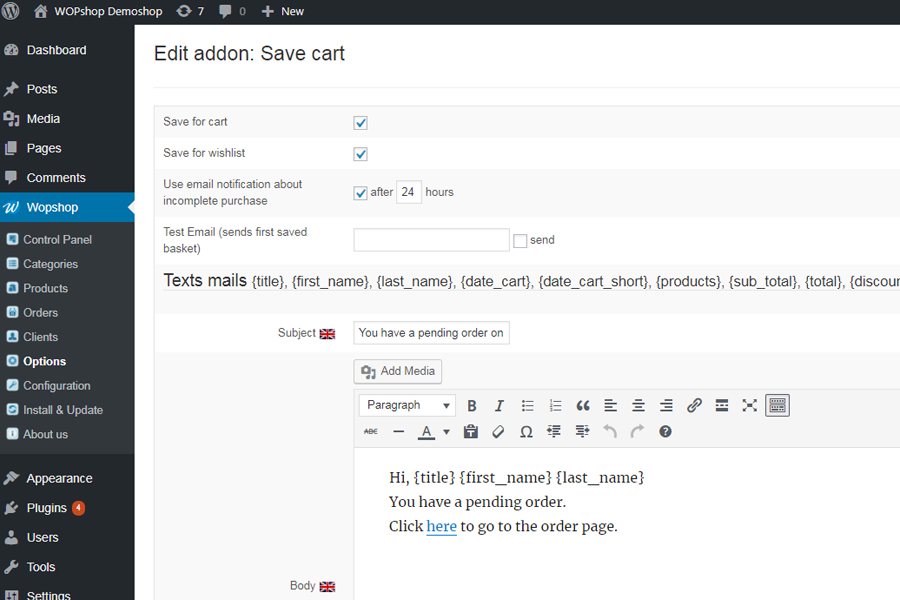 Save cart 1.0.0 (WOPshop 1.0.0 or greater)